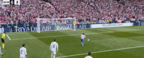 第50分钟,冈萨雷斯禁区内被居勒尔禁区内抬脚踢倒在地,主裁判给了点球,随后阿尔瓦雷斯点射命中,帮助马竞3-2完成反超。