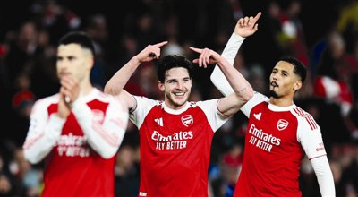 - 阿森纳队球员赖斯(中)赛后庆祝胜利。 新华社发