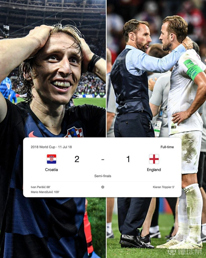 此役是2018年世界杯半决赛的重演,当时特里皮尔第5分钟就为英格兰首开纪录,但在佩里西奇第68分钟扳平比分之后,曼朱基奇在第109分钟打入制胜球,克罗地亚得以晋级决赛,也成为继德国、巴西之后第三支在世界杯逆转战胜英格兰的球队。