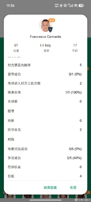 本场比赛卡尔马达在球队的角球里制造了不少威胁,一个头球补射挺有威胁,可惜被对面后卫解围,还有个头球后蹭给后面队友差点破门,有点可惜。但是他五次地面对抗全部失败,需要提升的地方可真不少。