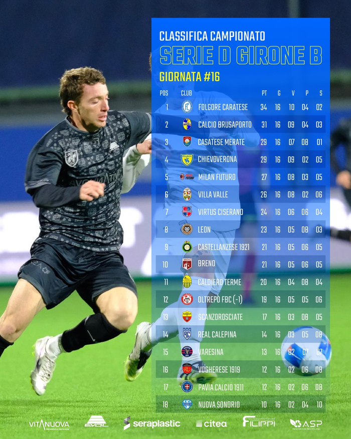 【意丁联赛B组积分榜】 #意丁联赛# 2025-26赛季意丁联赛第16轮积分榜: