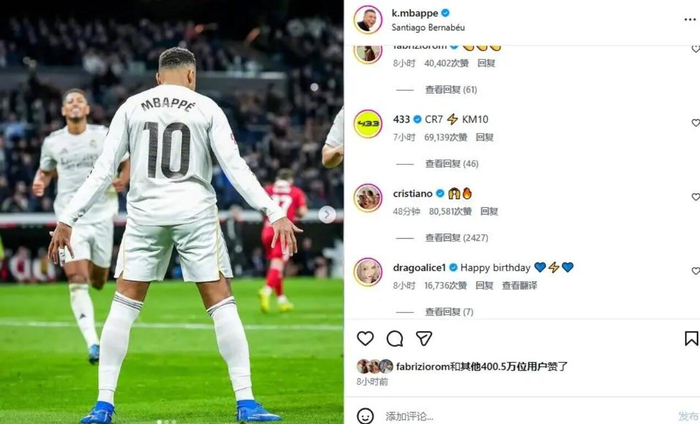 C罗今日在这条动态下进行了评论:🙌🔥