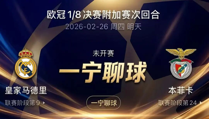 两队首回合对决,皇家马德里从客场带回一场小胜。比赛中皇马占据场面主动,而本菲卡的防守反击也组织得相当严密。最终维尼修斯凭借个人能力打破僵局,成为决定比赛的关键先生。那场比赛充满戏剧性与火药味,普雷斯蒂亚尼因此被停赛,而本菲卡申诉的巴尔韦德则未受影响。次回合本菲卡做客伯纳乌,想要实现翻盘无疑是一项极其艰巨的任务,不过本场皇马支持力度非常一般。综合来看,本场比赛看好本菲卡不会大败。
