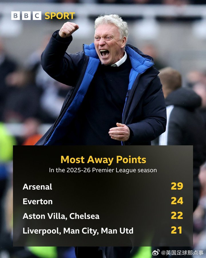 本赛季至今,只有联赛领头羊阿森纳的客场积分比埃弗顿多💪#纽卡斯尔联2比3埃弗顿#