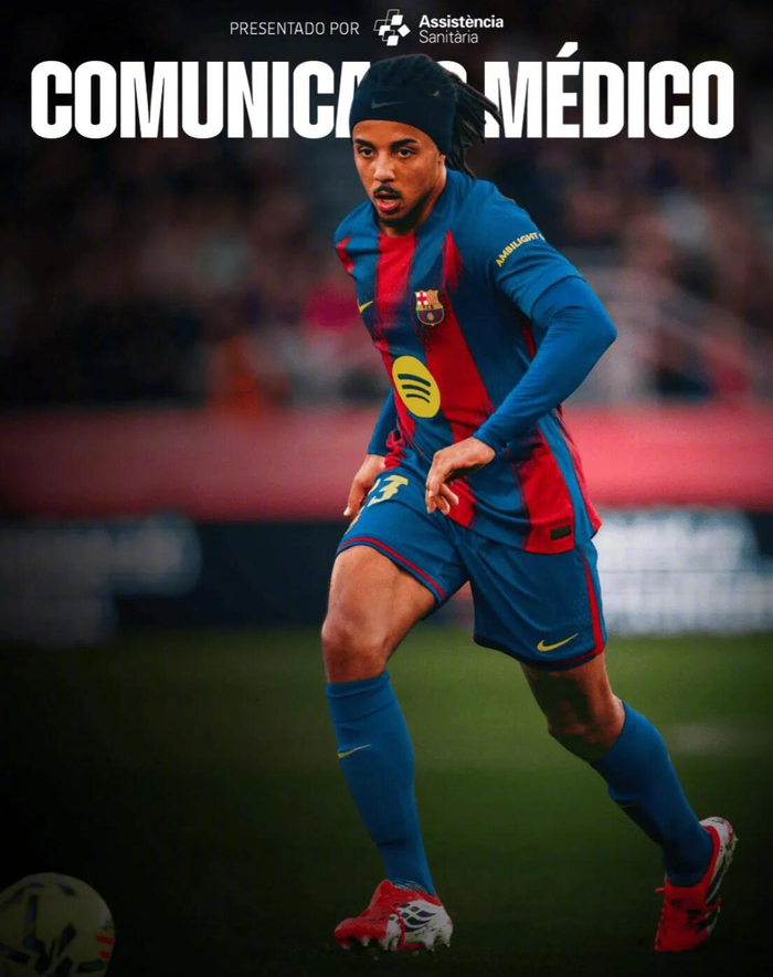 巴塞罗那足球俱乐部官方宣布,巴尔德左大腿远端股二头肌受伤,医疗测试确定其恢复过程大约需要4周的时间。孔德左大腿股二头肌中段受伤,具体的复出时间将取决于他的后续恢复进展。