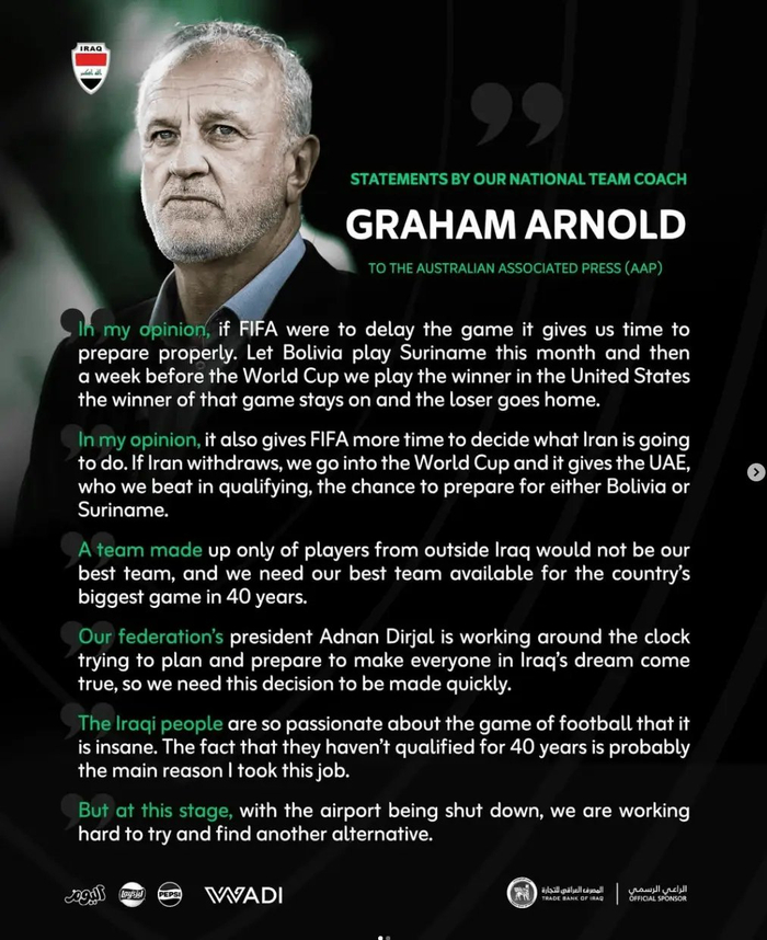 伊拉克足协在Instagram上发表声明称: