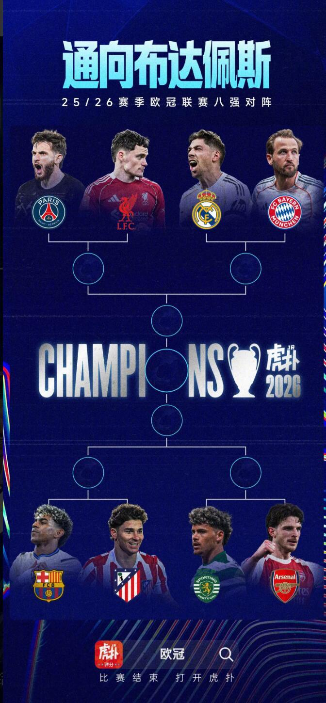 欧冠1/8决赛全部场次结束,按欧足联的1/4决赛落位,欧冠8强对阵如下: