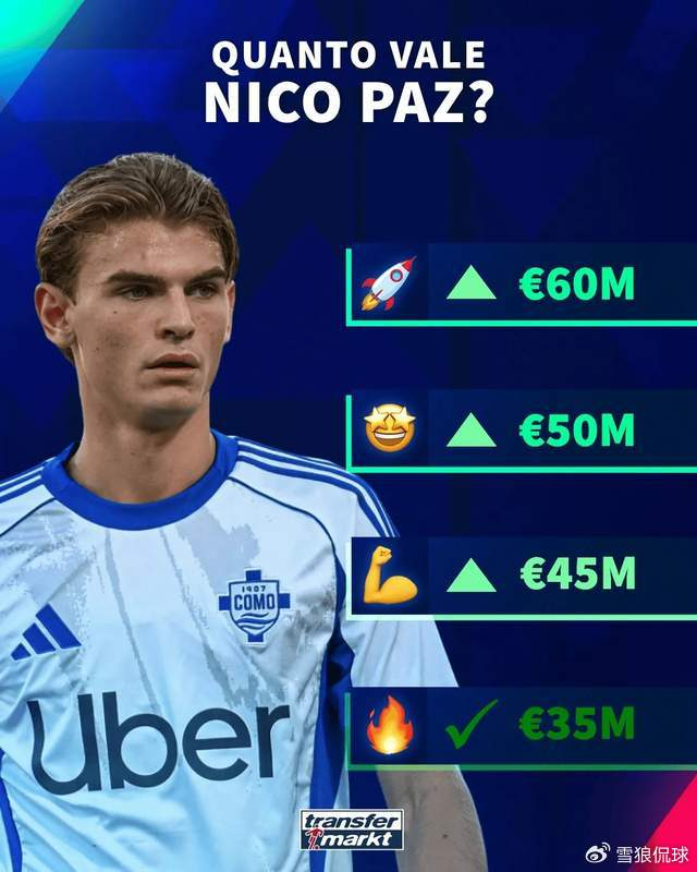 2004年9月8日出生的尼科帕斯刚刚过完他21岁的生日。这位出自特内里费青训的阿根廷天才2016年夏天加盟皇马,先后效力皇马青年队、U17、U18、U19和皇马卡斯蒂亚。2024年8月,尼科帕斯以600万欧元的身价加盟意甲升班马科莫,第一个赛季就交出了35场6球8助攻的惊艳数据。今年夏天,尼科帕斯得到了国米、热刺等众多欧洲豪门球队的青睐,后者甚至开出了7000万欧元的天价,足足是帕斯德国转会市场身价的2倍。但他拒绝邀请,选择了继续留在科莫效力。