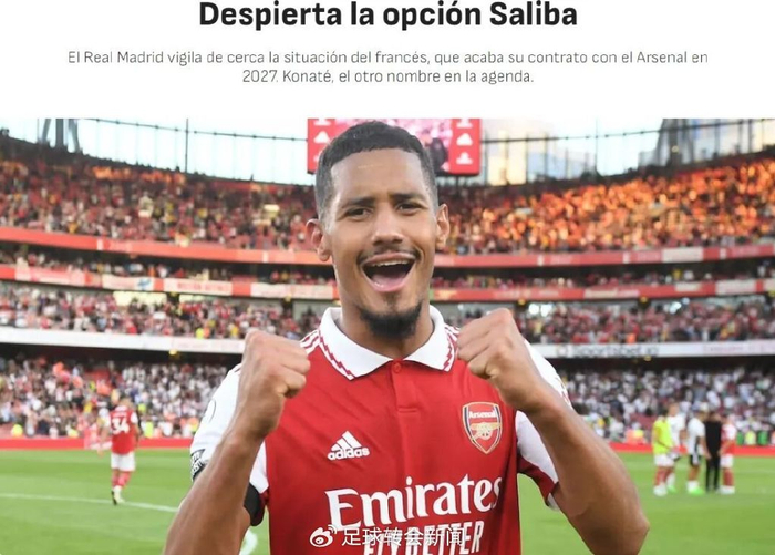 阿斯报消息,利物浦中卫科纳特只是皇马加强后防线的B计划,阿森纳中卫萨利巴才是他们明年夏天的第一目标。