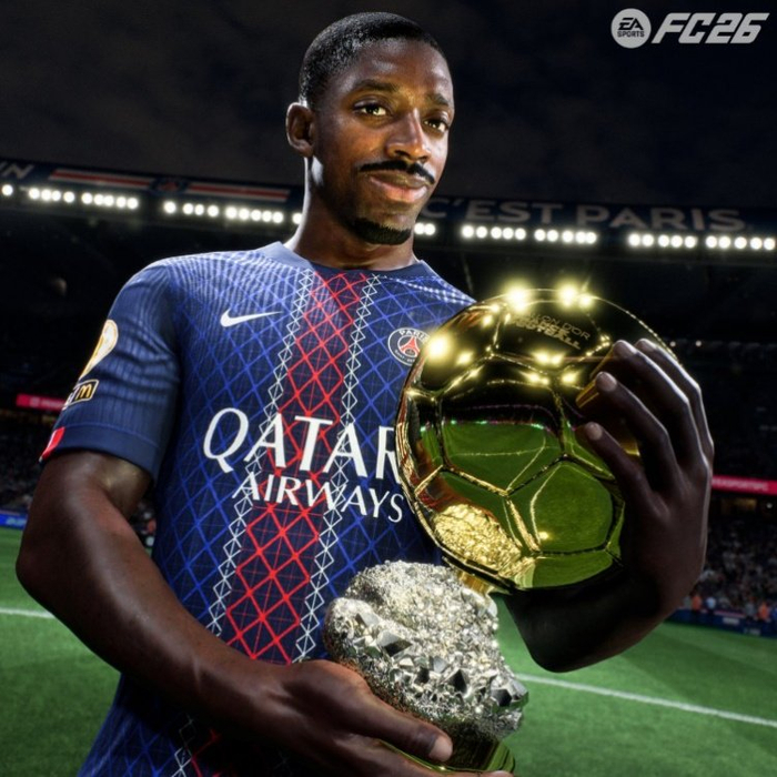 EA SPORTS FC晒出登贝莱捧起金球奖奖杯的游戏画面,同时配文:巴黎金色之夜,祝贺登贝莱赢得他的第一座金球奖。