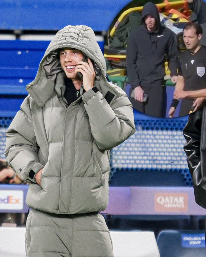 直播吧10月01日讯 欧冠联赛阶段切尔西1-0击败本菲卡,帕尔默现身斯坦福桥球场,穿着大棉衣+棉鞋看比赛。