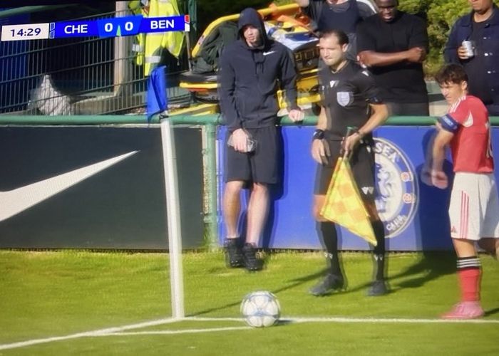 比赛当天下午,他还看了切尔西青年欧冠比赛,切尔西青年队5-2击败本菲卡青年队。