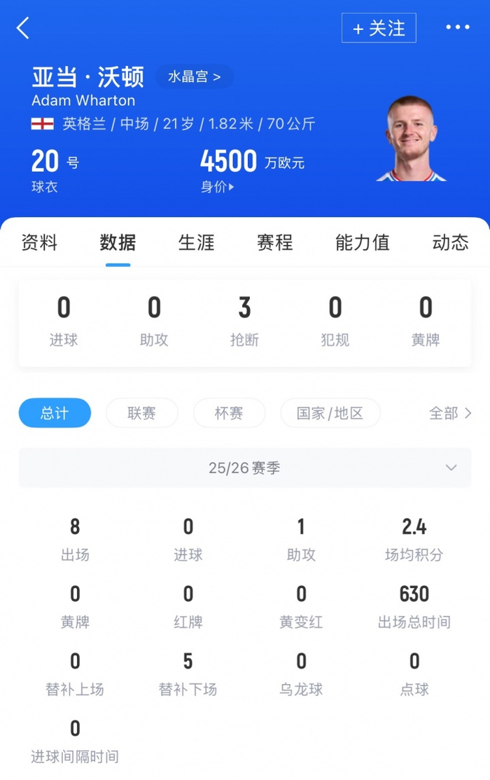 值得一提的是,据此前多家英媒以及西媒报道,曼联和皇马均有意这位21岁的英格兰中场。沃顿本赛季代表球队出场8次,贡献1助,目前沃顿德转身价为4500万欧元。