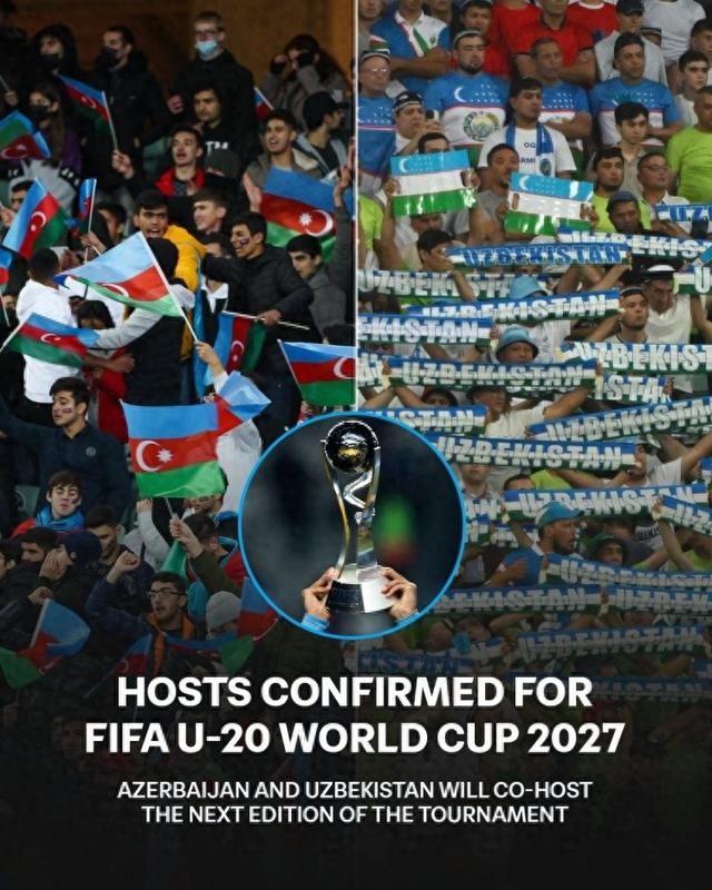 直播吧10月2日讯 国际足联官方消息,阿塞拜疆与乌兹别克斯坦将联合主办2027年U20世界杯。