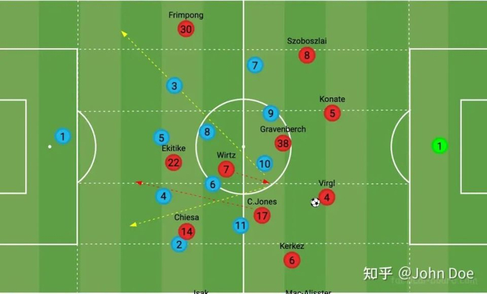 第一种则是把维尔茨从10挪到7号位,中场三人组固定,沿用类药厂的强弱战术,以及人员布置: