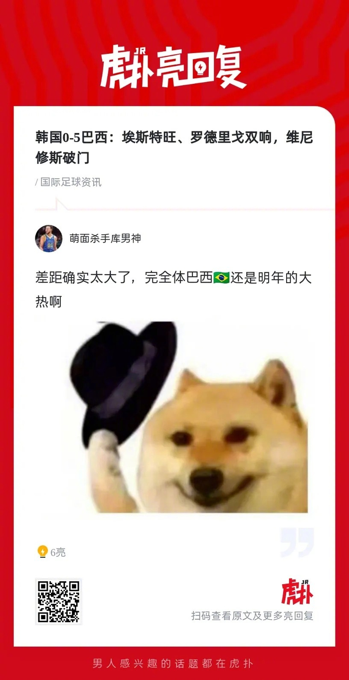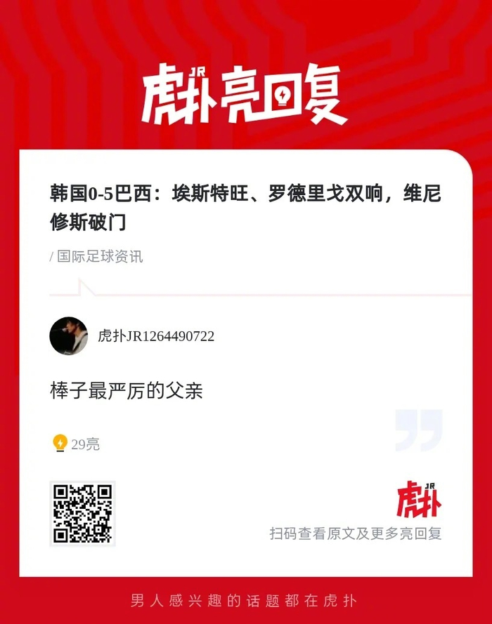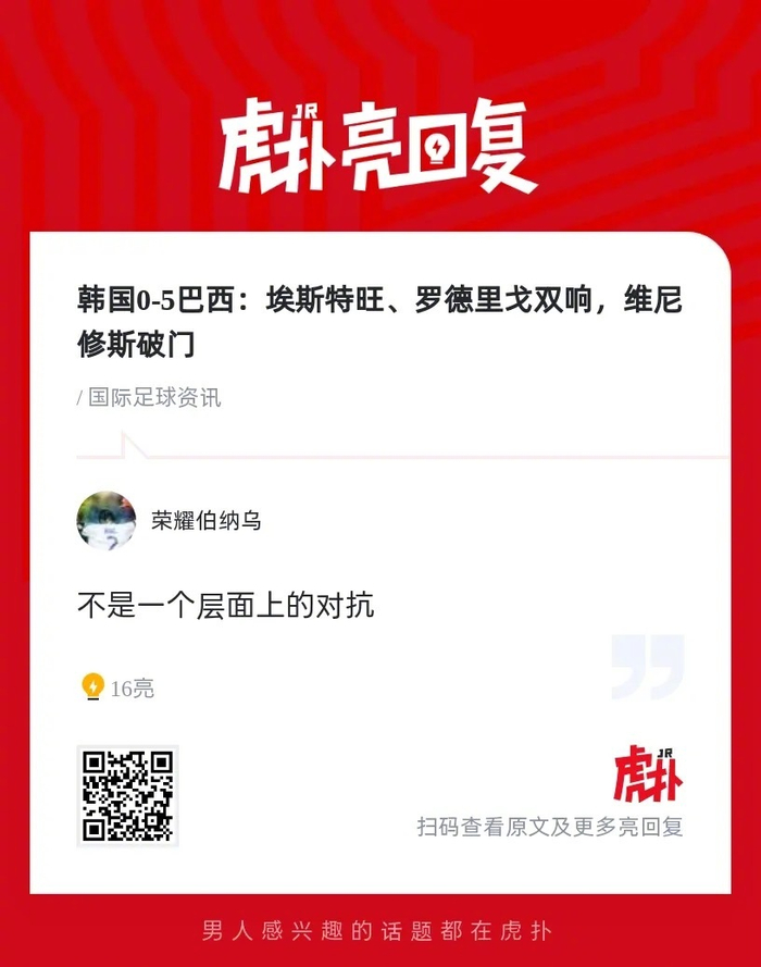 【韩国0-5巴西:埃斯特旺、罗德里戈双响,维尼修斯破门】上半场,上半场,埃斯特旺首开记录,罗德里戈兜射再下一城;下半场,埃斯特旺、罗德里戈相继破门完成梅开二度,库尼亚助攻维尼修斯单刀入网。