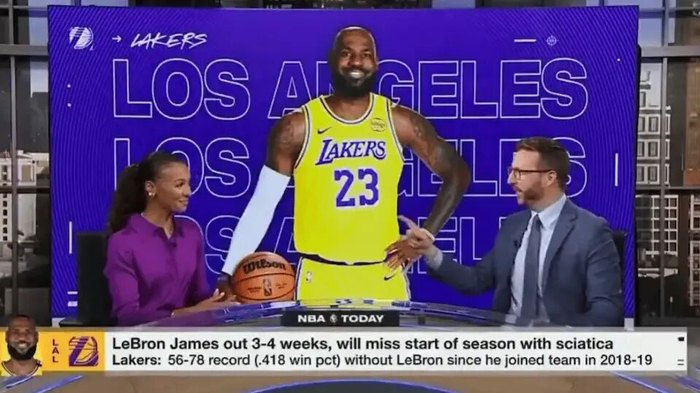 昨日Shams报道,詹姆斯因坐骨神经痛将缺席3-4周,这意味着他将肯定缺席湖人与勇士的揭幕战,以及湖人两战森林狼的比赛。