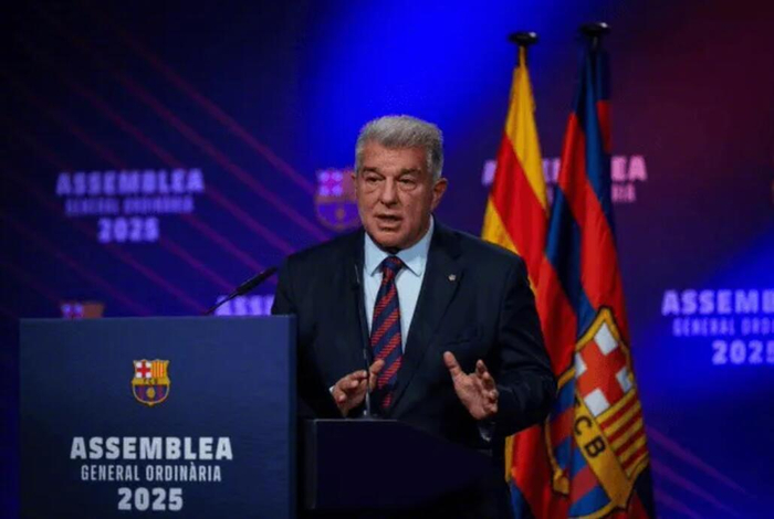 西甲豪门巴塞罗那今日以远程方式,召开主席拉波尔塔在任时期的最后一次常规会员大会。在大会开始后,巴萨主席拉波尔塔率先发言。