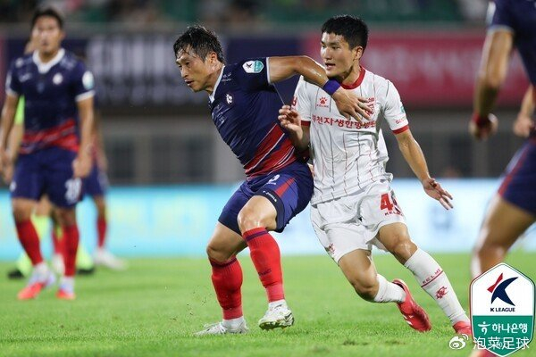 除了仁川联合3-0击败庆南,水原三星蓝翼昨天2-2战平全南天龙外,其余比赛也出现了一些名场面。釜山IPark主场4-1击败金浦FC,首尔衣恋主场4-1横扫忠南牙山,城南FC主场1-0击败华城FC,富川FC1995在客场被忠北清州FC以0-0逼平,这三场比赛的结果,也导致本轮结束后的排名发生了变化,富川虽然是第三位,积分60分距离第四位的全南天龙只有1分的领先优势。而本轮赢球的首尔衣恋、城南FC和釜山分别上升到五、六、七位,金浦惨败落到第八位。