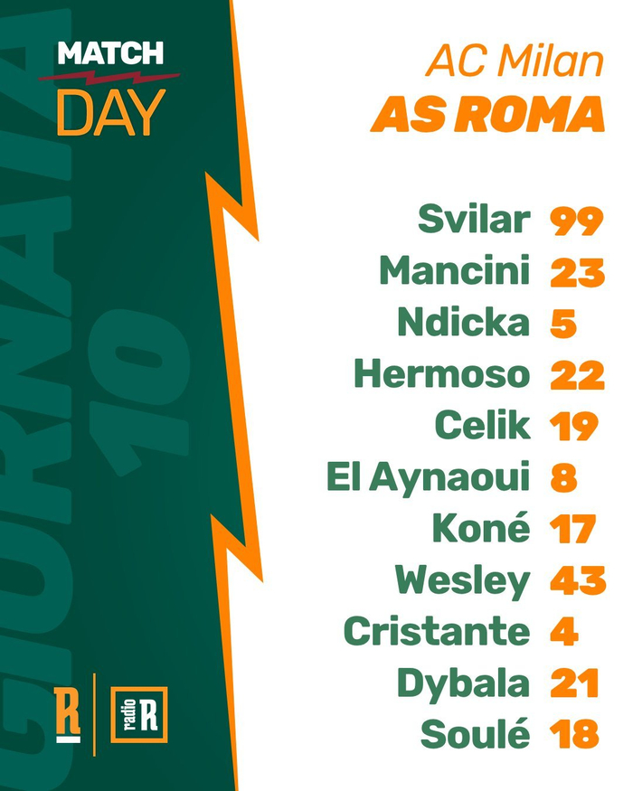 【首发阵容】2025-26赛季#意甲联赛#第十轮-🔴⚫️米兰主场对阵罗马队(352);队长:迈尼昂🇫🇷.