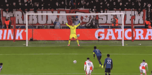 第32分钟,队长萨卡操刀主罚,虽然门将判断正确,怎奈球速太快,扑救不及。