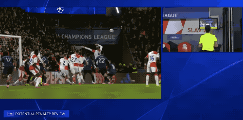第29分钟,加布里埃尔头球攻门高出了球门,随后VAR介入判定普罗沃德手球在先,阿森纳获得点球。