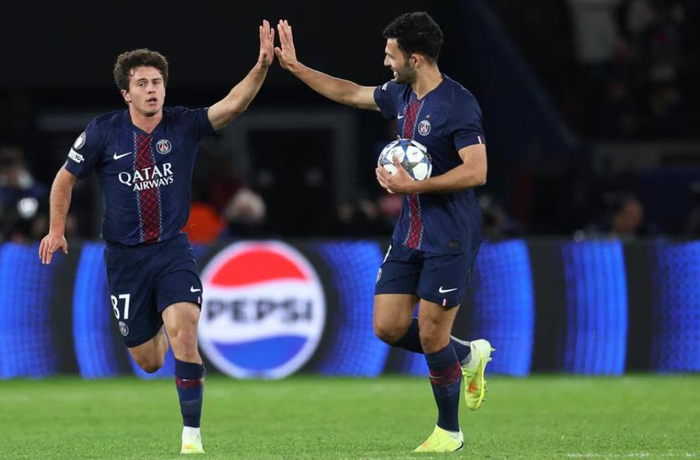 巴黎首发:30-舍瓦利耶、2-阿什拉夫、5-马尔基尼奥斯、25-努诺·门德斯、51-帕乔、8-法比安、17-维蒂尼亚、33-扎伊尔·埃梅里、7-克瓦拉茨赫利亚、10-登贝莱、29-巴尔科拉