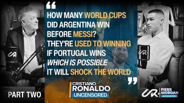 周四,C罗接受著名主持人皮尔斯-摩根专访的第二部分内容公布。C罗表示赢得世界杯并不是自己的梦想,也不会改变自己的历史地位。