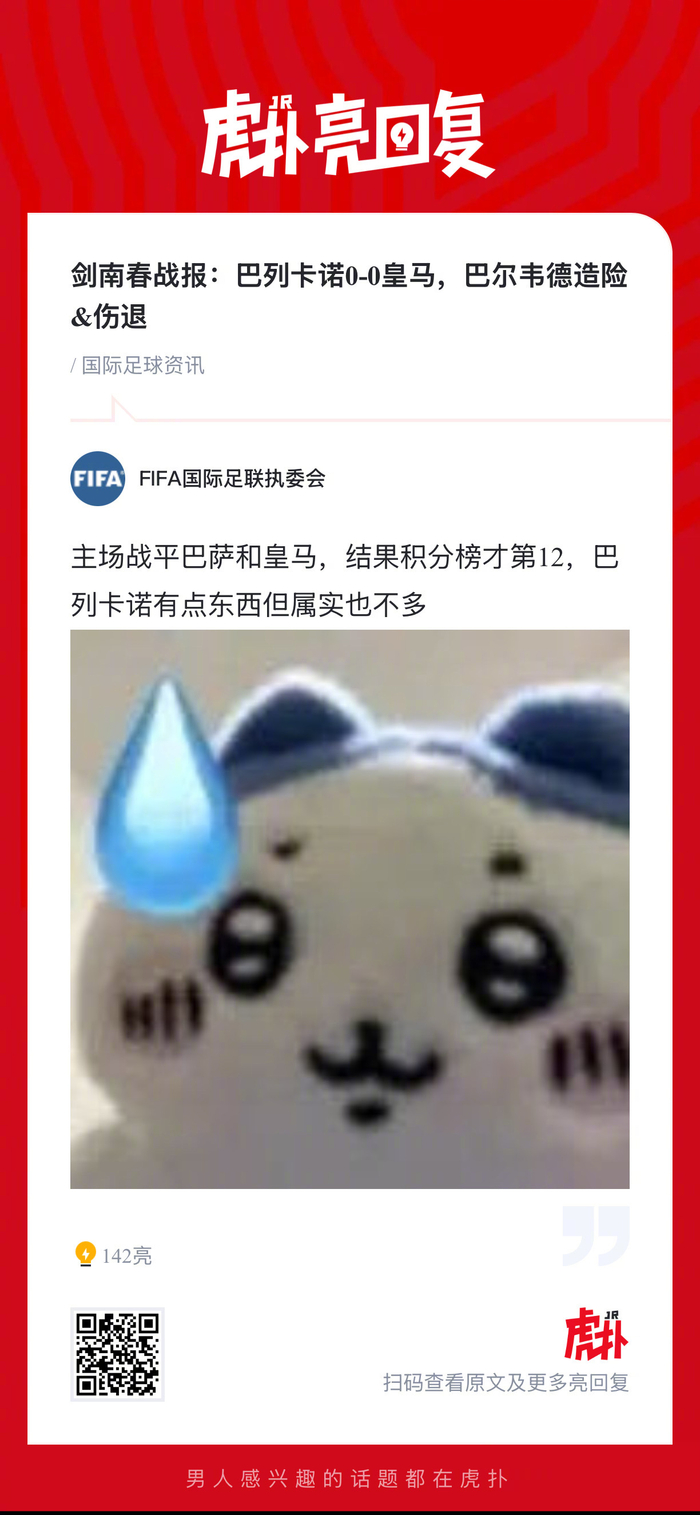 【战报:#巴列卡诺0比0皇马# ,巴尔韦德造险&伤退】上半场居莱尔屡遭险没能取得进球,下半场巴尔韦德大腿位置不适主动要求换人。经过激烈的角逐,两队未能分出胜负,最终巴列卡诺与皇马0-0握手言和。