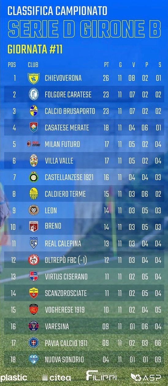 【意丁联赛B组积分榜】 #意丁联赛# 2025-26赛季意丁联赛第11轮积分榜: