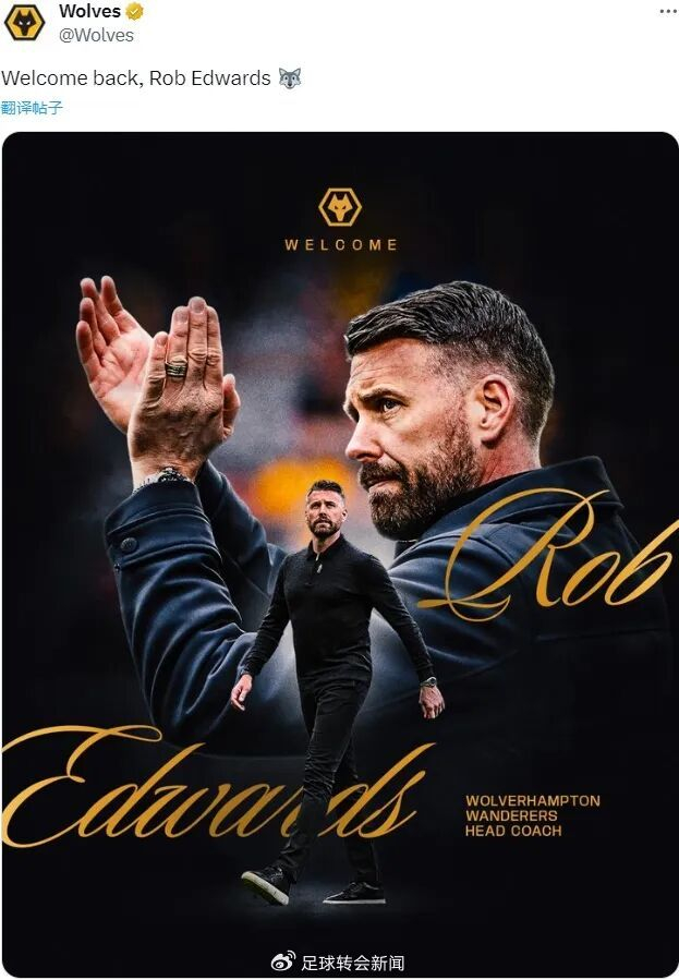 官方:狼队宣布从米德尔斯堡挖来了罗博-爱德华兹,并将其任命为了新主帅,双方签下了一份为期三年半的合同。