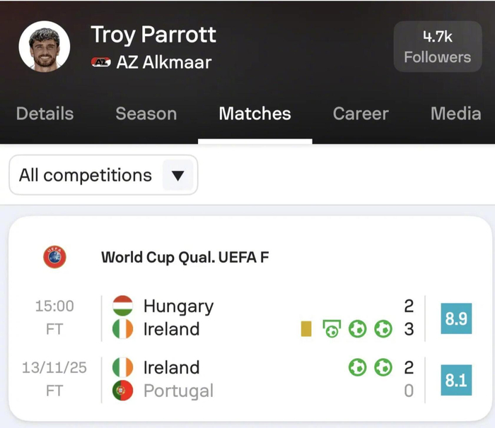 【现象级发挥,帕罗特1周内包揽爱尔兰5球助球队进附加赛】世界杯欧洲区预选赛,爱尔兰客场3-2逆转匈牙利进军附加赛。
