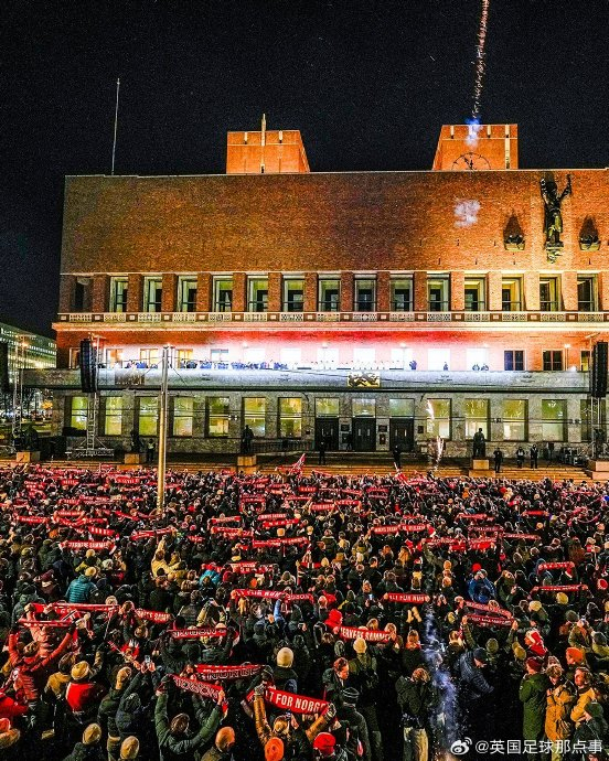 自1998年以来首次冲进世界杯!挪威球员们在奥斯陆市政厅和球迷们一起庆祝