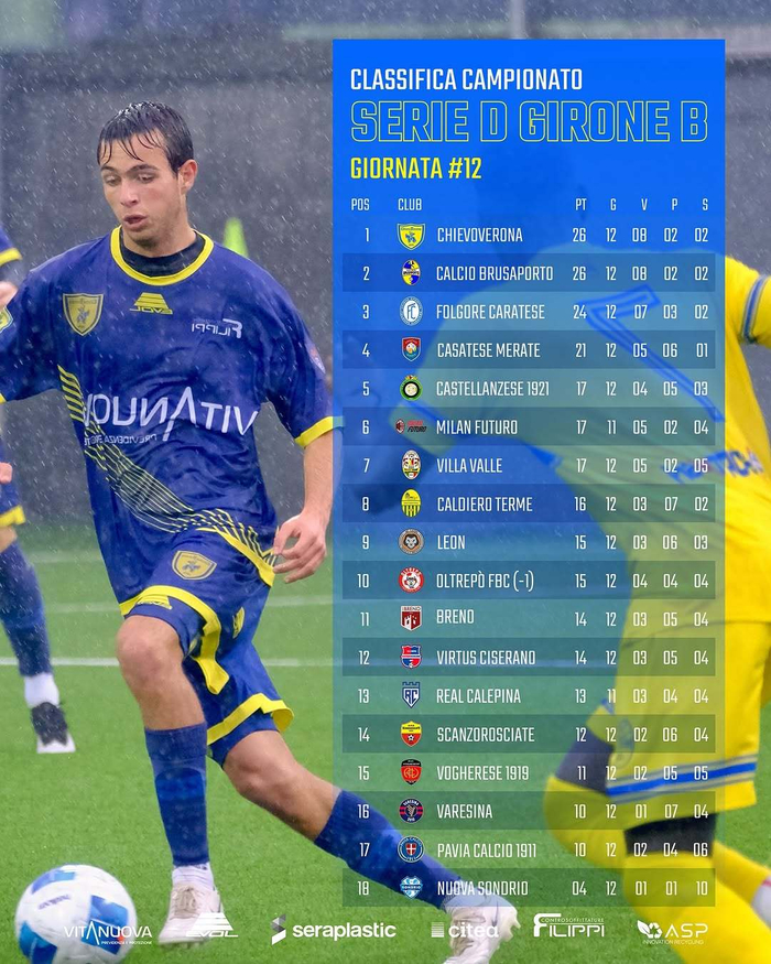 【意丁联赛B组积分榜】 #意丁联赛# 2025-26赛季意丁联赛第12轮积分榜: