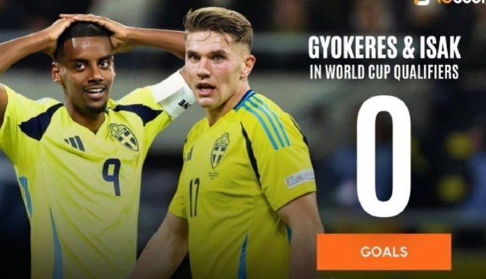 瑞典队坐拥2大身份--1.4亿欧的伊萨克以及7500万欧的约克雷斯。不过,这两人在世预赛上的发挥无比糟糕。6场世预赛,伊萨克出场4次,一球没进。无论是在俱乐部还是在国家队,伊萨克都被嘲讽为大水货。