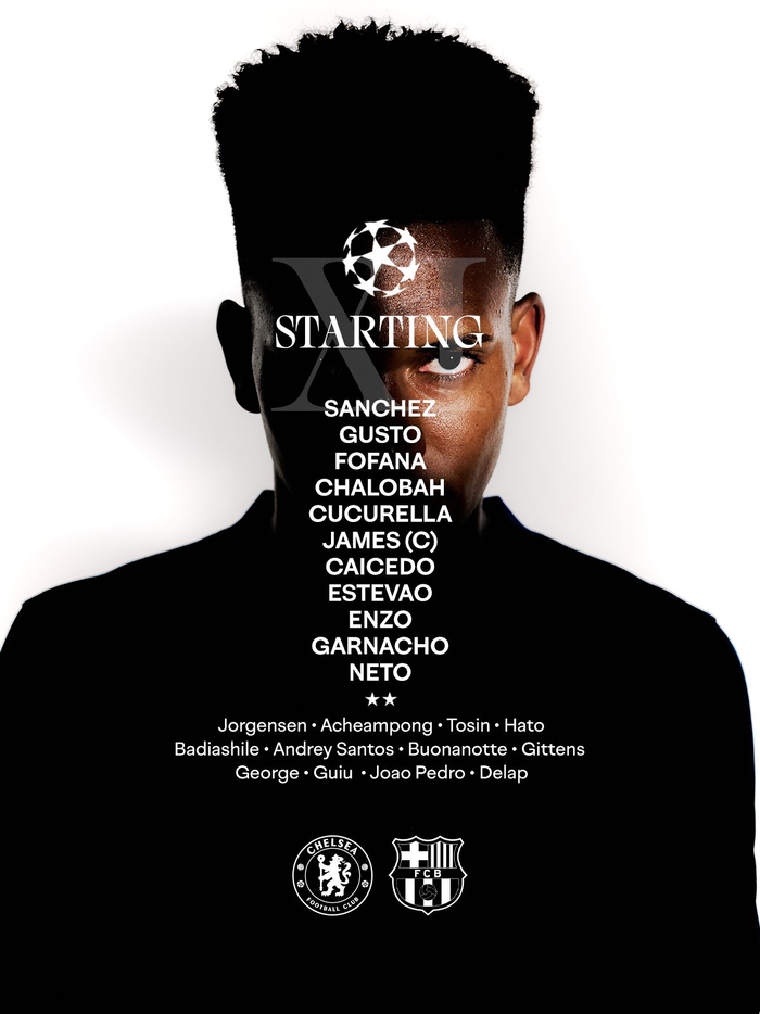 德拉普、吉乌和佩德罗都在替补席,帕尔默没意外没进大名单