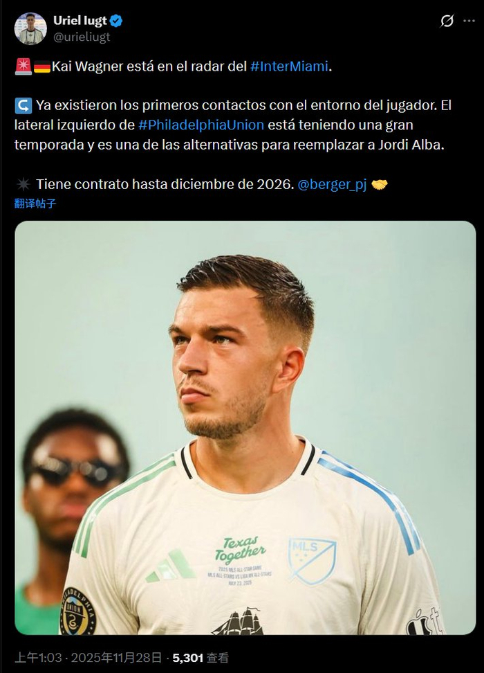 据记者乌列尔·伊乌特消息,费城联合队的左边后卫凯·瓦格纳进入迈阿密国际的引援视野,俱乐部已经与球员的团队进行了初步接触。本赛季这名德国球员表现非常出色,入选了美职联常规赛最佳阵容。