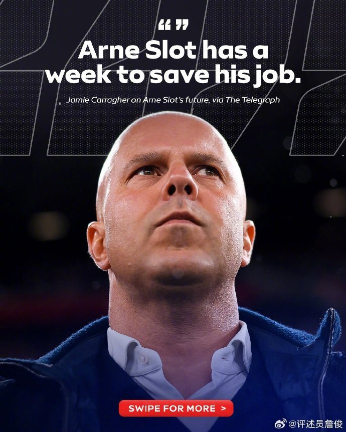 @评述员詹俊 发文谈到了对于利物浦主帅斯洛特能否保住帅位的看法。他觉得斯洛特只有一场比赛的机会了。