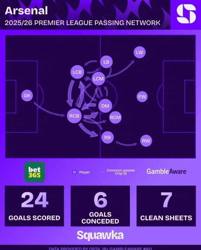 Squawka报道,阿森纳在斯坦福桥球场对阵切尔西的最近六场英超联赛中保持不败: