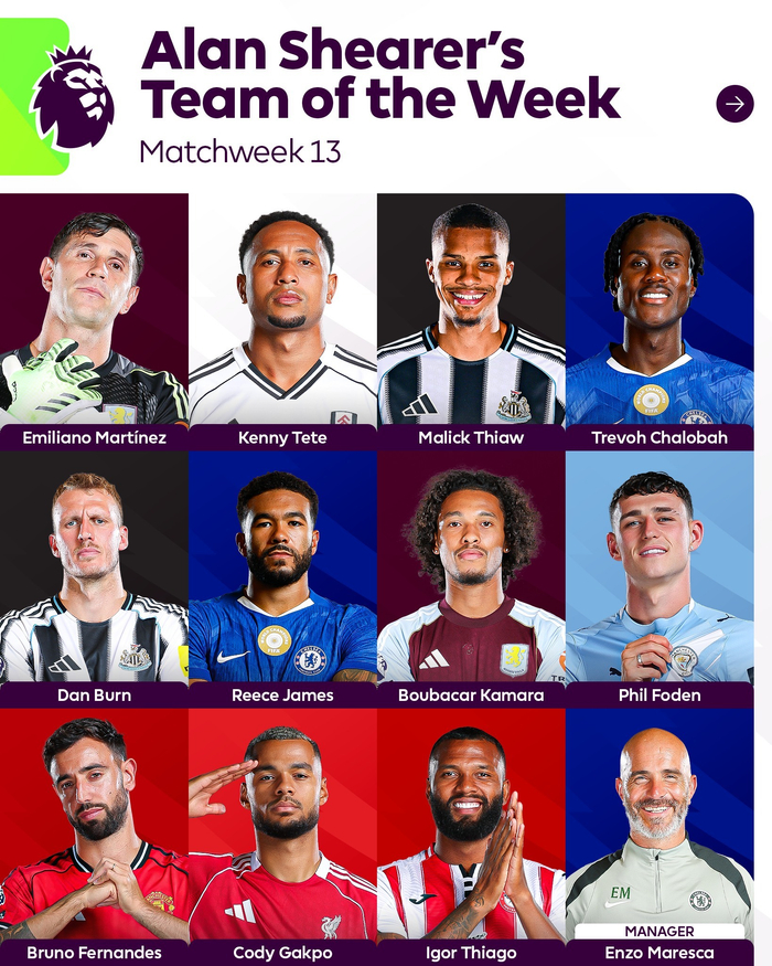 【官方】 #英超# 2025-26赛季英格兰🏴足球超级联赛第13轮最佳阵容。![]()