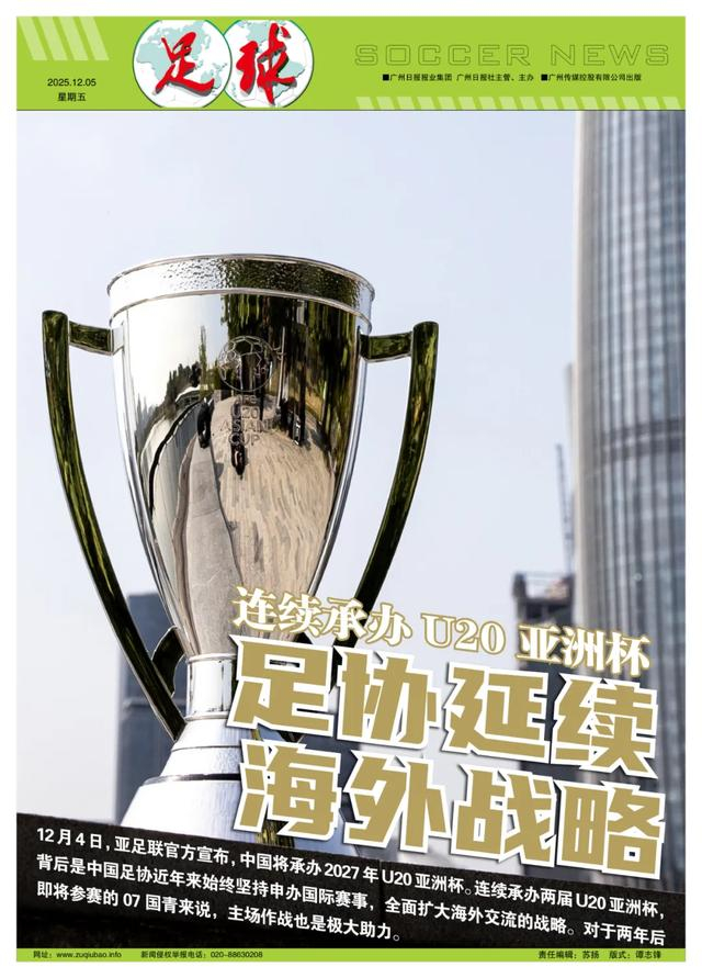 记者陈永报道 12月4日,亚足联官方宣布,中国将承办2027年U20亚洲杯。作为唯一申办国,中国将连续承办两届U20亚洲杯,2025年的U20亚洲杯于今年2月12日至3月1日在深圳成功举办。