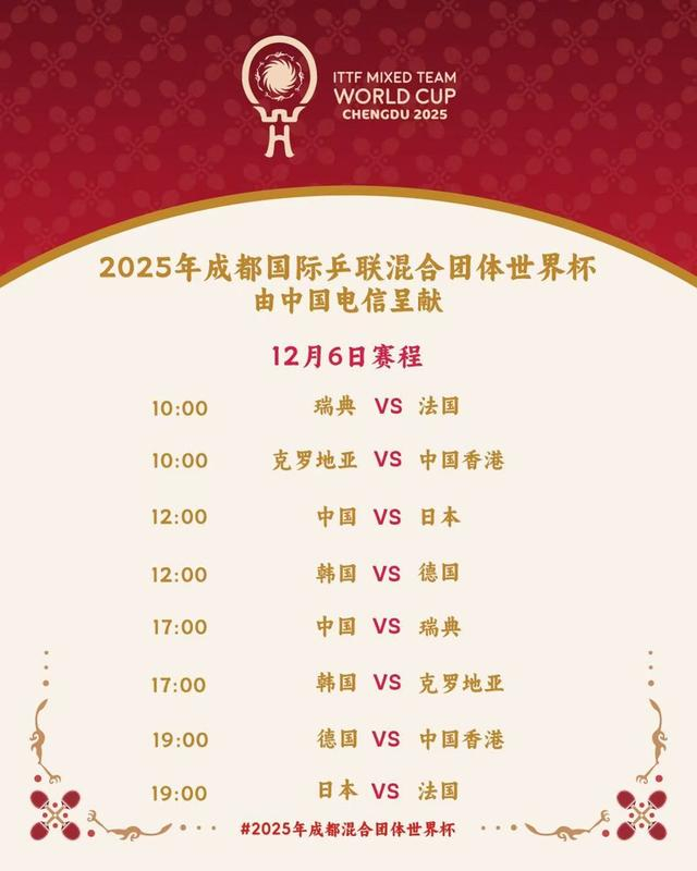 12月5日,国际乒联混团世界杯第二阶段,中国队与日本队均以5胜、积10分的战绩并列榜首,中国队以更少的负局数占据微弱优势。两队已经提前晋级四强。12月6日,中国队将迎来与日本队的强强对话,这场比赛也被球迷称作“提前上演的决赛”。日本队在5日对阵韩国队的比赛中雪藏核心张本智和,似乎在为这场关键战蓄力,更让赛事悬念拉满。