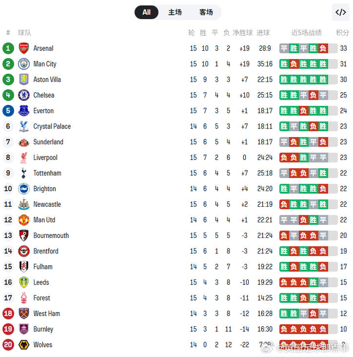 实时积分榜:利物浦本轮拿1分暂列第8,净胜球还是0