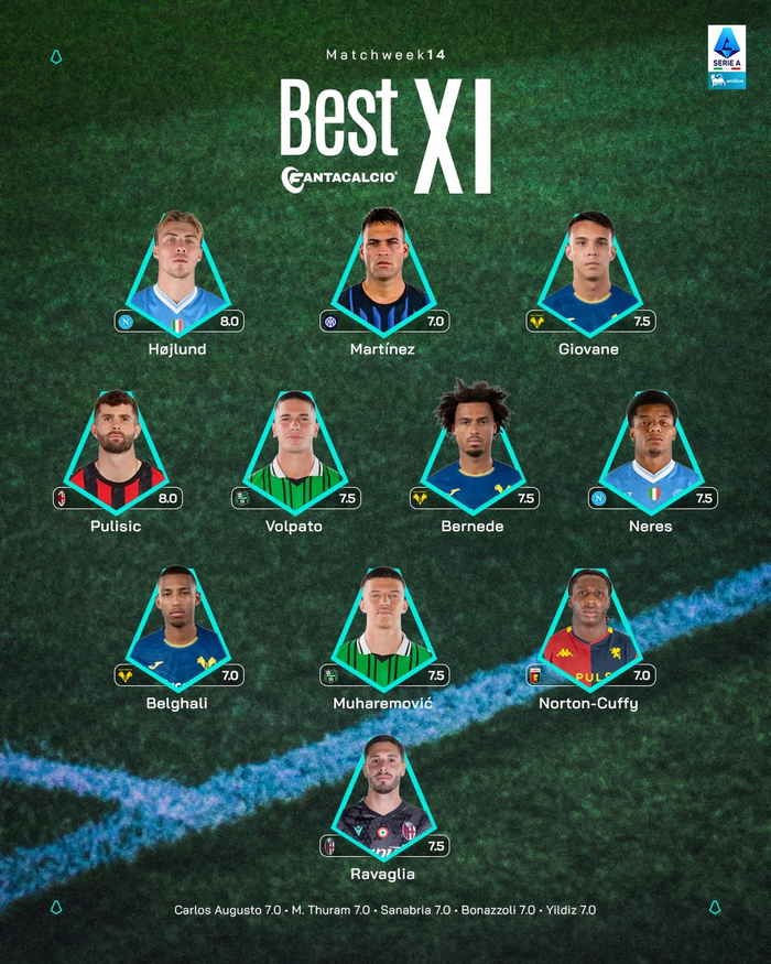 【官方】 🔴⚫️ 普利西奇🇺🇸入选#意甲联赛# 第14轮最佳阵容。👏🏻#sempremilan#