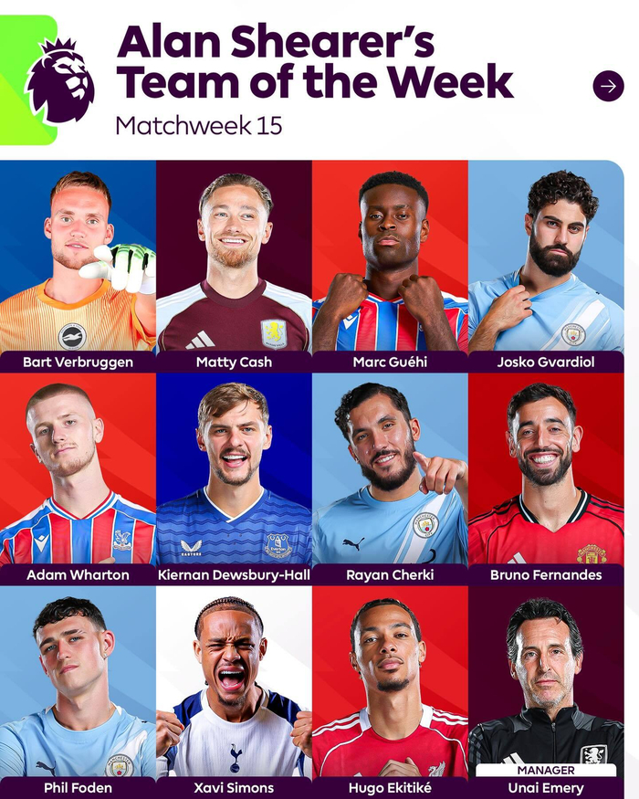 【官方】 #英超# 2025-26赛季英格兰🏴足球超级联赛第15轮最佳阵容。