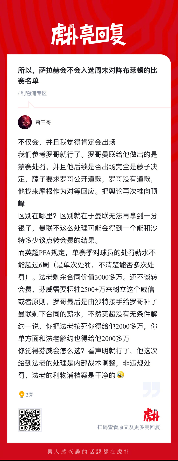 你们觉得萨拉赫会不会入选周末对阵布莱顿的比赛名单?