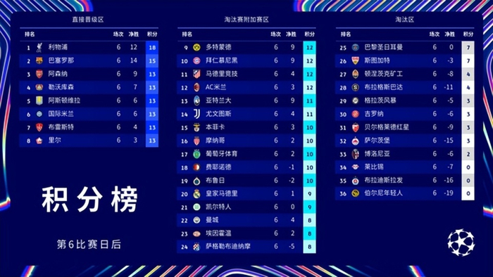 更糟糕的就是2连胜后依旧没能进入前8,只是排名第9或者第10,这样一来不但需要多打一轮附加赛,同时进入16强战后挑战联赛轮第7或者是第8的队伍(有可能是利物浦和切尔西),哪怕晋级,依旧会在8强战面对阿森纳或者是拜仁,这也将会是最坏的情况。