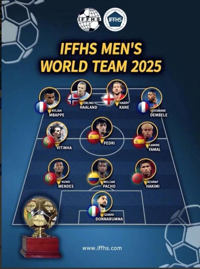 IFFHS2025年男足最佳阵容: