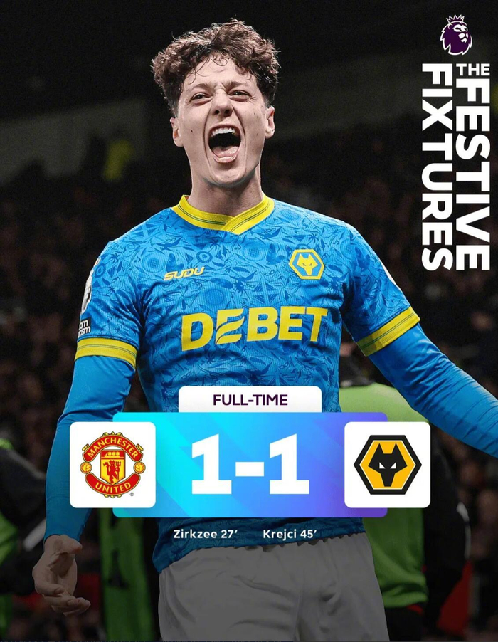 #曼联1比1狼队# 至此,狼队的各项赛事12连败和英超11连败均宣告结束。