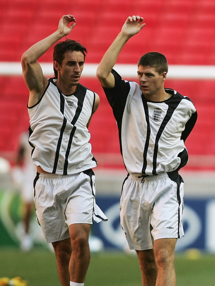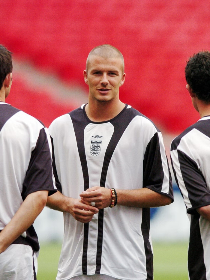 还记得英格兰队2004年欧洲杯集训时穿的那件茵宝黑白配色训练衫。#足球#